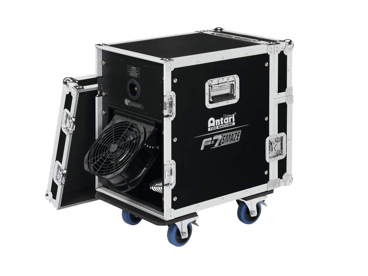 Hochleistungs-Nebelmaschine im Flightcase, Aussto?winkel variabel Ultimative Nebel- und Dunstnebelmaschine f?r professionelle Theatereffekte Erzeugt gewaltige Mengen Nebel oder feinen, langanhaltenden Dunstnebel in wenigen Minuten Integriert im rollbaren Flightcase f?r harten Toureinsatz Hochgeschwindigkeitsl?fter mit einstellbarem Austrittswinkel Selbstreinigungsfunktion DMX-Funkempf?nger (WDMX) f?r drahtlose Daten?bertragung mit 2,4 GHz macht aufw?ndige Verkabelung ?berfl?ssig Steuerung per integrierter DMX-Schnittstelle oder Steuermodul mit LCD-Anzeige Einstellbarer Timer mit Intervall, Dauer und Nebelmenge Kontinuierlicher Aussto? mit einstellbarer Nebelmenge oder manuelle Ausl?sung mit maximaler Nebelmenge Einstellbare L?ftergeschwindigkeit Gro?es Staufach f?r zwei 5-Liter-Kanister PowerCon-Stromanschluss (Kabel inklusive) Ideal f?r B?hnen, gro?e Diskotheken, Produktionsfirmen un…