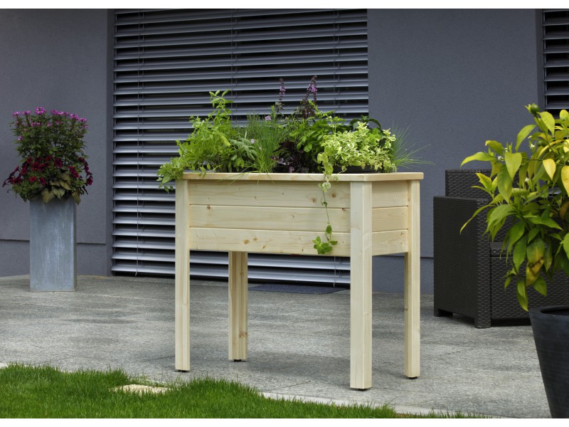 Ideal für den Balkon oder die Terrasse, ermöglicht das Kräuterhochbeet Gärtnern auf kleinstem Raum. Durch die Höhe von ca. 0,80 m können Sie bequem im Stehen arbeiten. Zum Standard-Lieferumfang gehört eine hochwertige Kunststoffwanne. Die Wanne verhindert den Kontakt der Erde zum Holz, ermöglicht z…