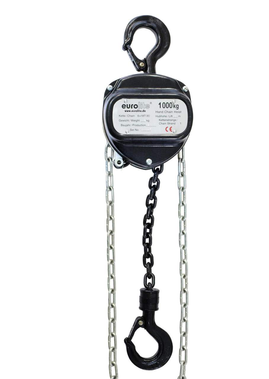 Flaschenkettenzug als Aufbauhilfe Kettenabmessung und G?teklasse 6 x 18 – T(8) Hubh?he 6 m Inkl. Pr?fzeugnis (beiliegend) Wird regelm??ig bei einem akkreditierten Institut gepr?ft Mit geschmiedeten Trag-Lasthaken (1 t)