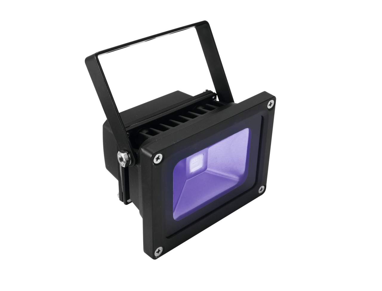 Wetterfester (IP54) UV-Scheinwerfer mit 10-W-COB-UV-LED Ausgestattet mit 1 x 10 W COB UV LED f?r Schwarzlichteffekte Ideale LED-Leuchte f?r die Au?enbeleuchtung Wetterfestes Geh?use (IP54) Inkl. Montageb?gel zur Festinstallation Auch f?r gr??ere Entfernungen geeignet Abstrahlwinkel von 120? Schaltnetzteiltechnologie f?r Netzspannung zwischen 100 und 240 Volt Anschlussfertig ?ber Netzleitung mit Schutzkontaktstecker LED: 1 x COB (Chip-on-board) 10 W ultraviolett (UV) Die Ger?tek?hlung erfolgt ?ber passive Konvektionsk?hlung Ansteuerbar ?ber plug and play Effekt: UV-Effekt F?r den Au?enbereich geeignet